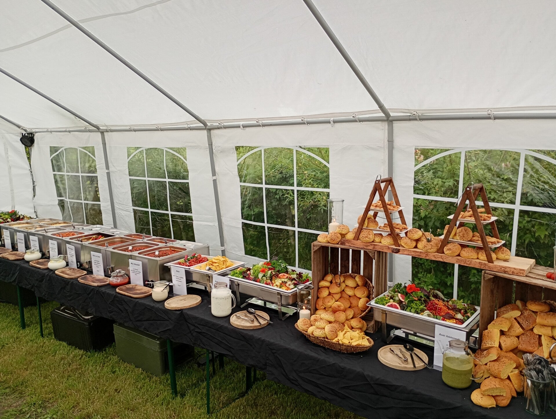 Bei unseren all inklusive Buffets sind Geschirr & Besteck in ausreichender Menge, sowie die Anlieferung, Abholung und die anschließende Reinigung dieser geliehenen Komponenten.